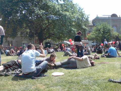 Police everywhere and some stupid kids (they are really nothing else) burnt down cars and smashed office windows just around the corner of my flat ... If most of those kids at least would have a message, but it's only "hey smash some stuff and play tom&jerry with the police..."